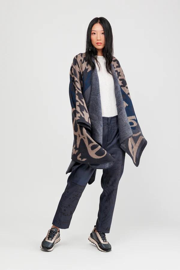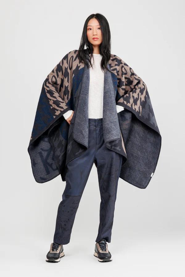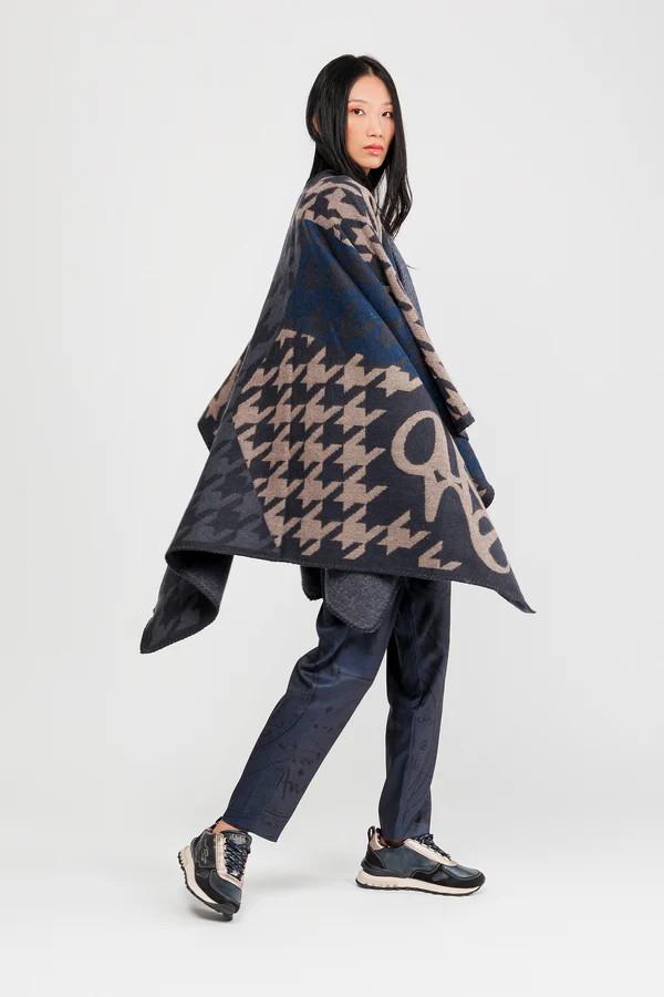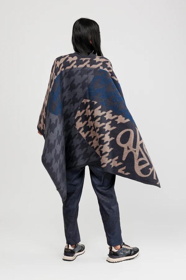 Poncho azul y beige